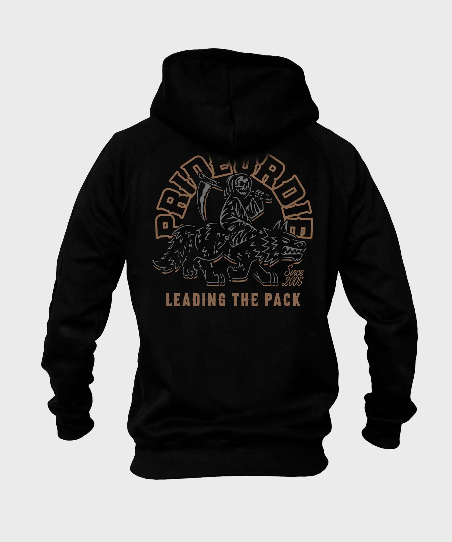 Zeigen Sie Ihre Überlegenheit am Käfig, auf der Tatami oder auf der Straße mit dem neuen Zip-Hoodie von PRiDEorDiE: LEADING THE PACK (das Rudel anführen).