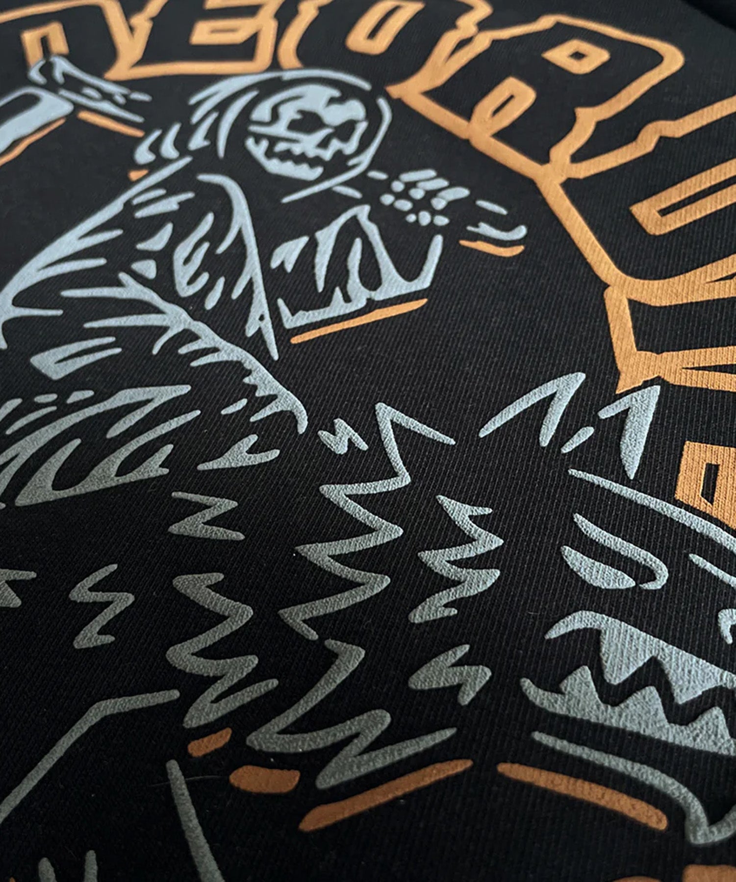 Sein kraftvolles Design zeigt den Sensenmann, der auf einem Wolf reitet - ein Symbol für Stärke und Entschlossenheit. Dieses Sweatshirt wurde für den Alltag entworfen und bietet einen unvergleichlichen Tragekomfort. Es ist ideal, um zwischen zwei Kämpfen warm zu bleiben oder einfach nur zu entspannen.