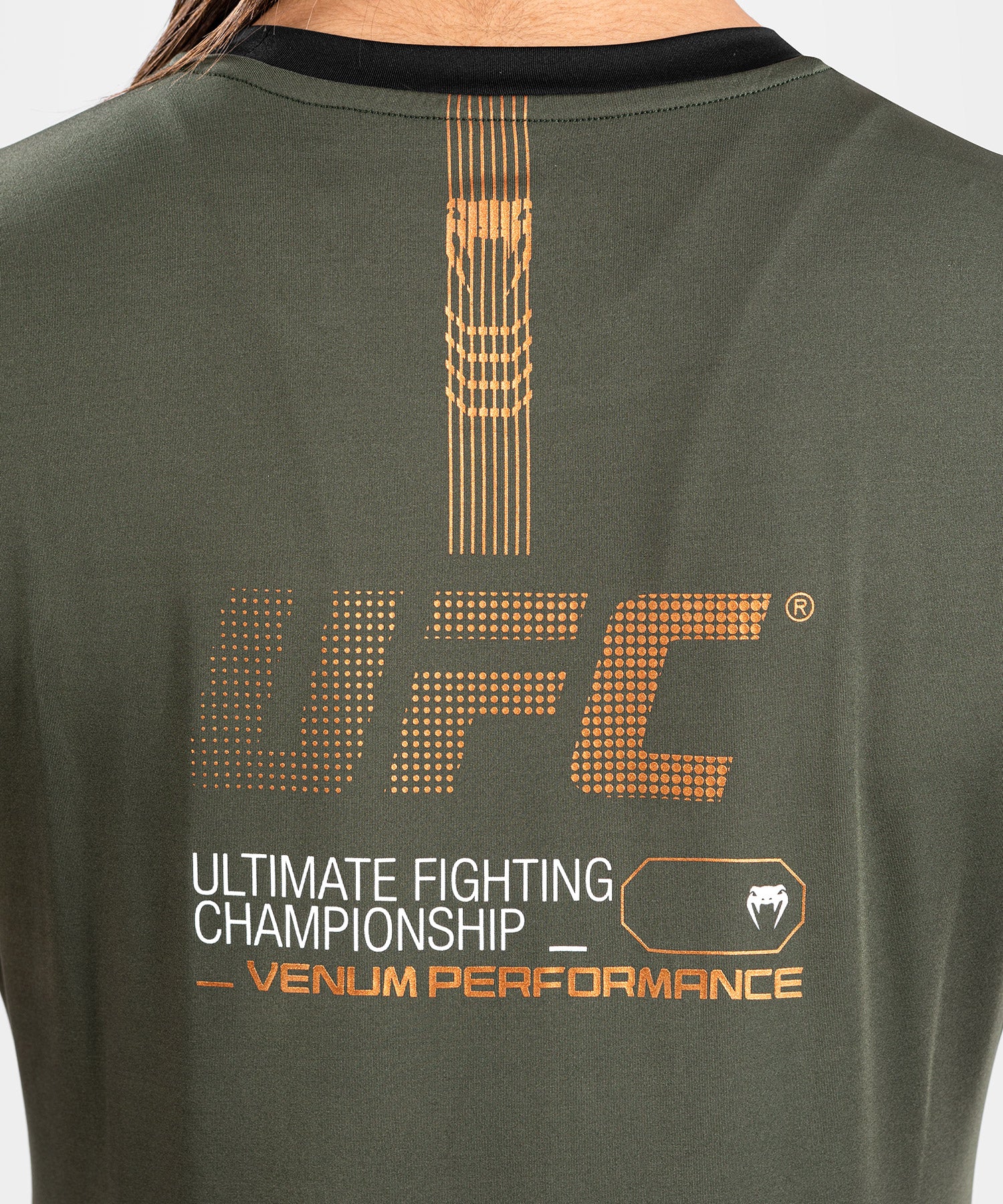 Das kühne Design mit den rot-weißen Venum- und UFC-Logo-Details ist eine Anspielung auf die adrenalingeladene Erfahrung der Fight Week - vom Medientraining bis zum Wiegen. Mit dem Dry-Tech-Material dieses Shirts bleiben Sie auch bei den intensivsten Trainingseinheiten bequem und kühl.