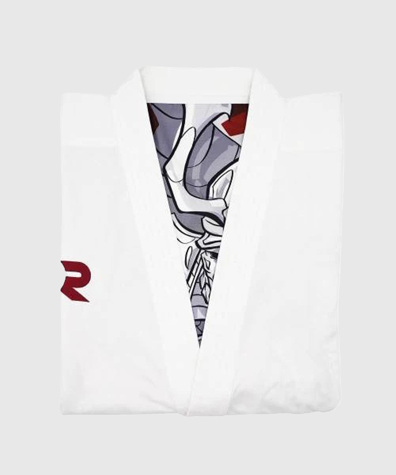 This karategi stands out with its striking aesthetic. It showcases the talent of illustrator DPA—a black belt in karate, judo, and Brazilian jiu-jitsu—who infused his unique creative vision into the design. His artistic interpretation of sport, movement, and style gives this exceptional gi a distinctive graphic flair. Imagination and art come alive in this kimono’s design, making it a true collector’s piece thanks to its limited edition production!