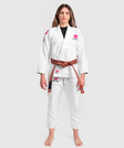 Shirubia means “knowledge, understanding, awareness.” The jacket features vibrant Japanese floral embroidery on the sleeves, giving the Gi a fresh, distinctive look designed to make female fighters stand out.