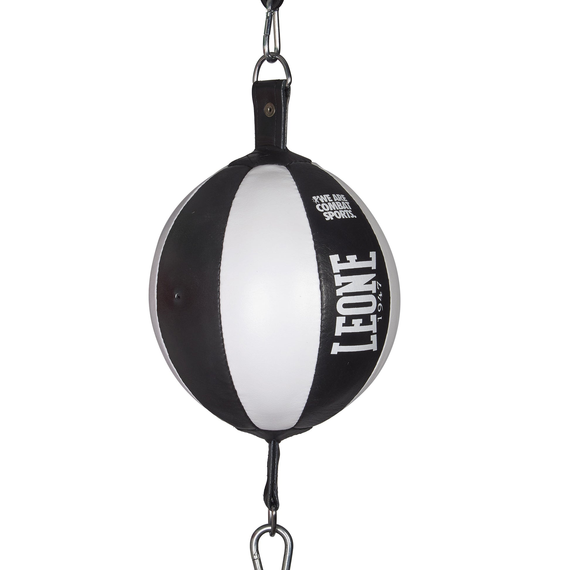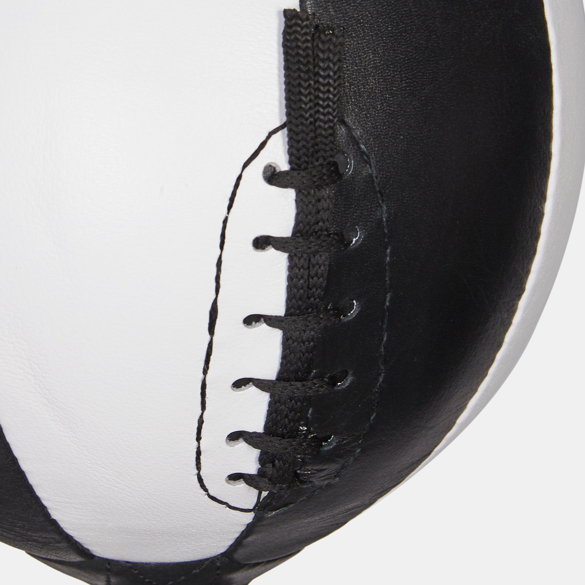 Double elastic ball crafted from stitched leather, 22 cm diameter.