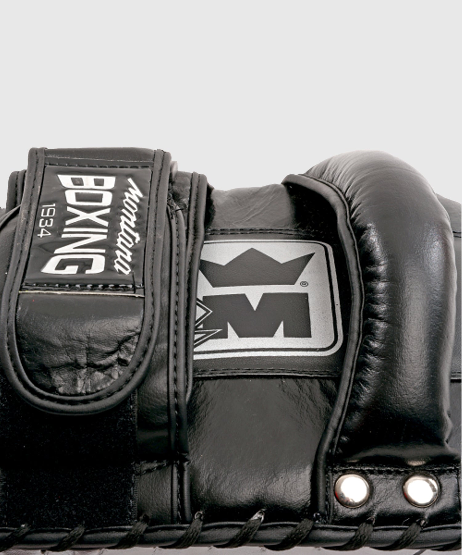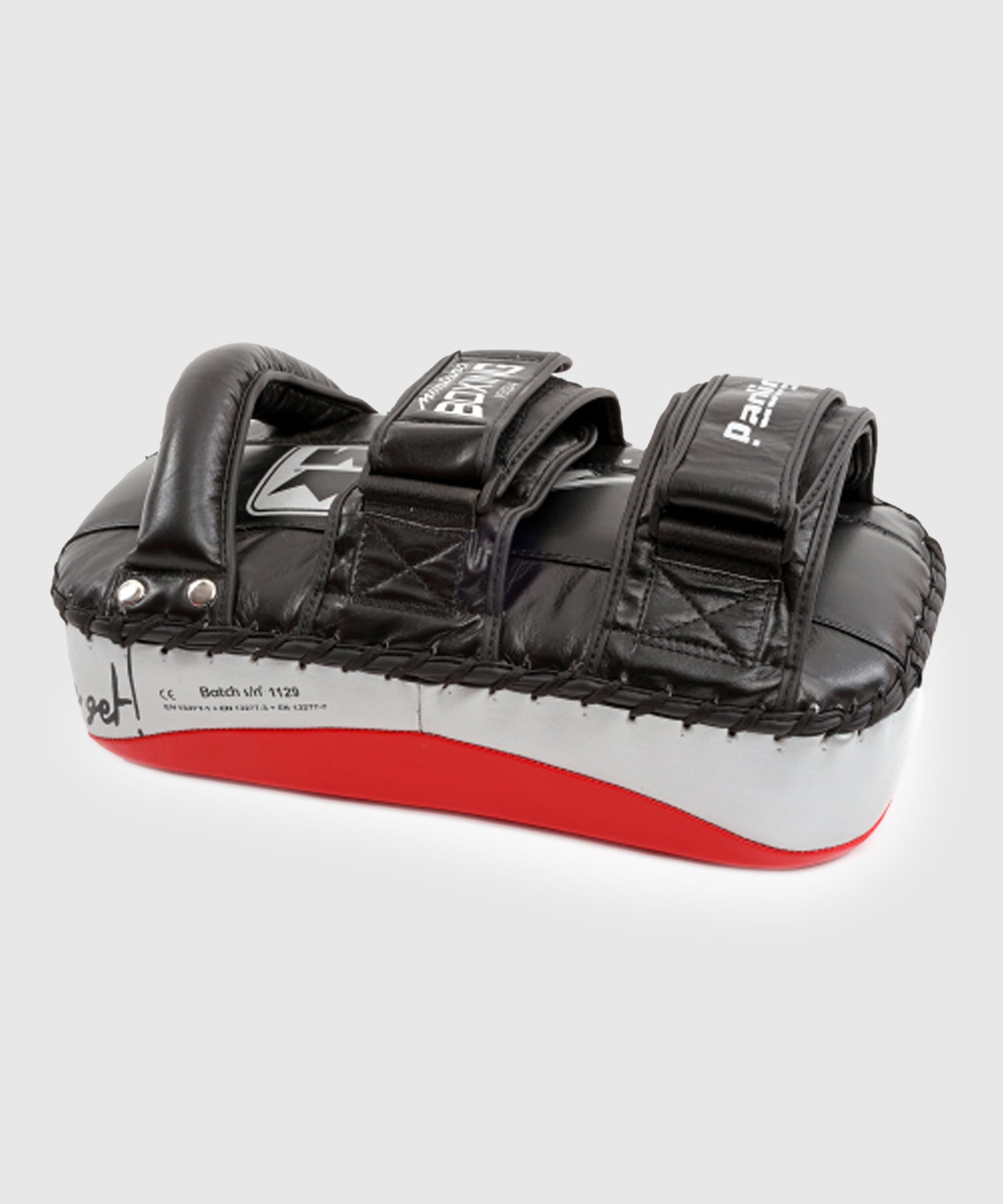 Lightweight curved buffalo leather pad. Ergonomic forearm grip for optimal control. Riveted handle with adjustable fastening thanks to 2 Velcro straps featuring shock-absorbing cushions. Multi-density absorber combining EVA, a high-density impact insert, and comfort foam for maximum impact absorption and superior shockwave distribution.