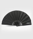 Traditional Tai Chi fan featuring black bamboo spokes and a solid fabric, designed for training and demonstrations. Originally a sharp metal weapon, the Tai Chi fan is now used in modern practice for performing forms and as a training tool.