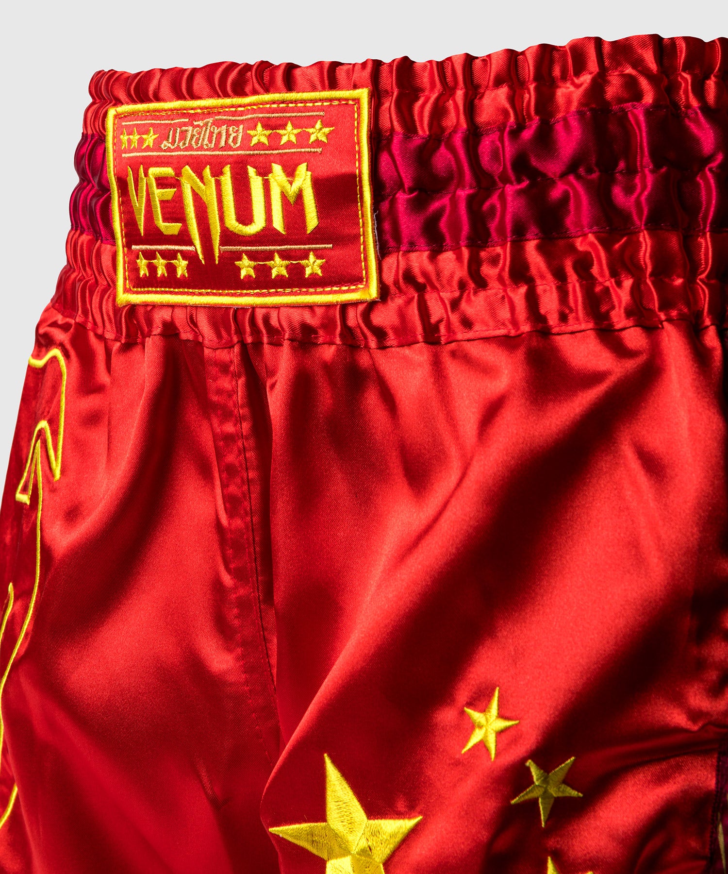 Made in Thailand, the Venum MT Flags Muay Thai Shorts were designed and developed utilizing a light and flexible satin polyester.