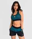 The Venum Tactical XT women's sports bra, black/forest green, is a swim-back bra that offers great freedom of movement while providing good support. Suitable for combat sports and the gym.