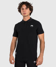 The Venum x Dodge Demon 170 Men's Polo Shirt in black is a short-sleeved performance polo with a regular fit. The Venum logo is silvered on the chest, while the Demon 170 x Venum logo is emblazoned on the right hip.