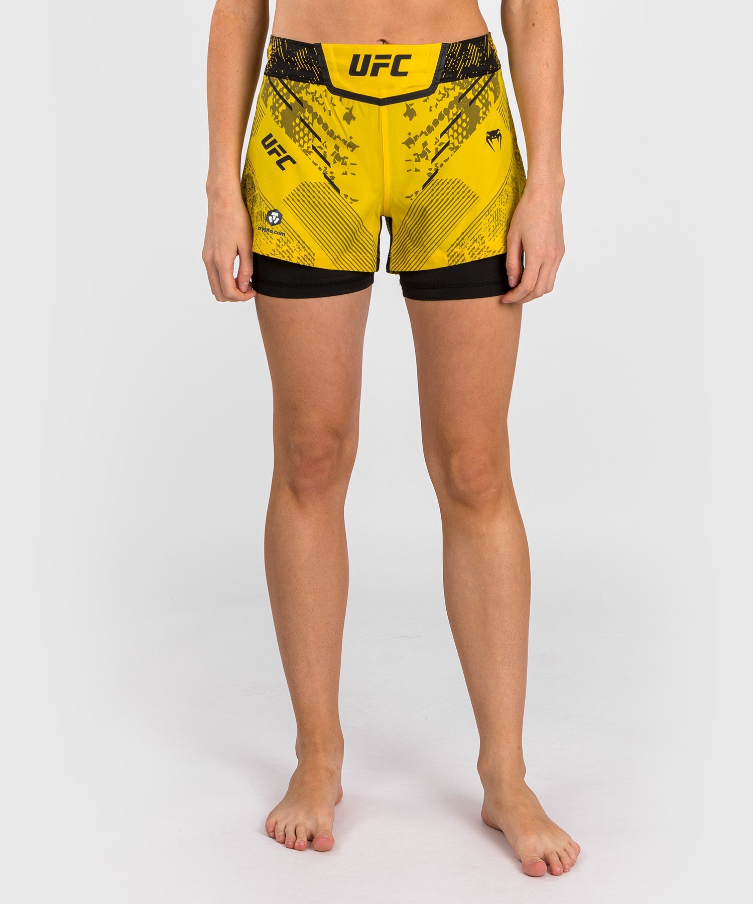 These women's fight shorts, in yellow, are part of the latest high-oxygen collection from Venum and the UFC.