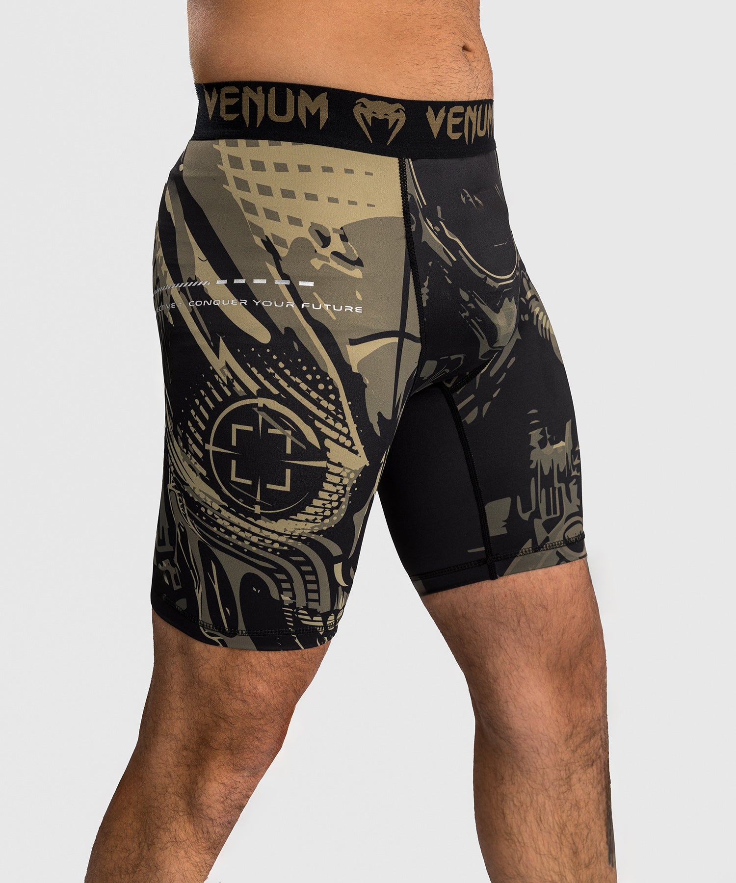 Los pantalones cortos Vale Tudo Venum Space Invader son pantalones cortos de compresión a medio muslo diseñados para soportar entrenamientos regulares. El tejido ligero ofrece un cómodo efecto "segunda piel". El tejido de compresión puede ayudar a la recuperación muscular durante y después del ejercicio.