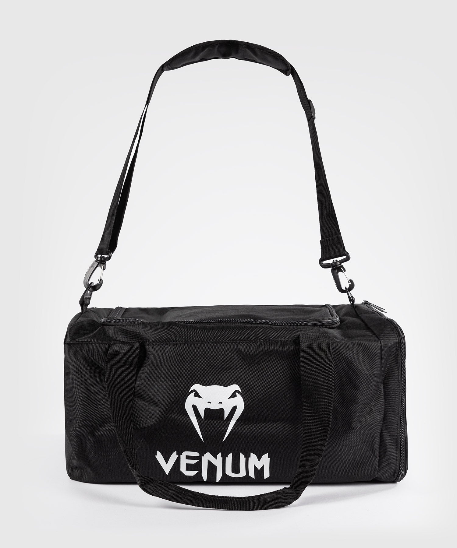 La bolsa deportiva Venum Essential es un bolso tipo duffle diseñado para guardar todo tu equipo de gimnasio y pertenencias. Cuenta con un amplio compartimento principal y varios bolsillos prácticos con cremallera. Las correas permiten llevarla al hombro o en la mano. Este bolso resistente es perfecto para atletas y luchadores.