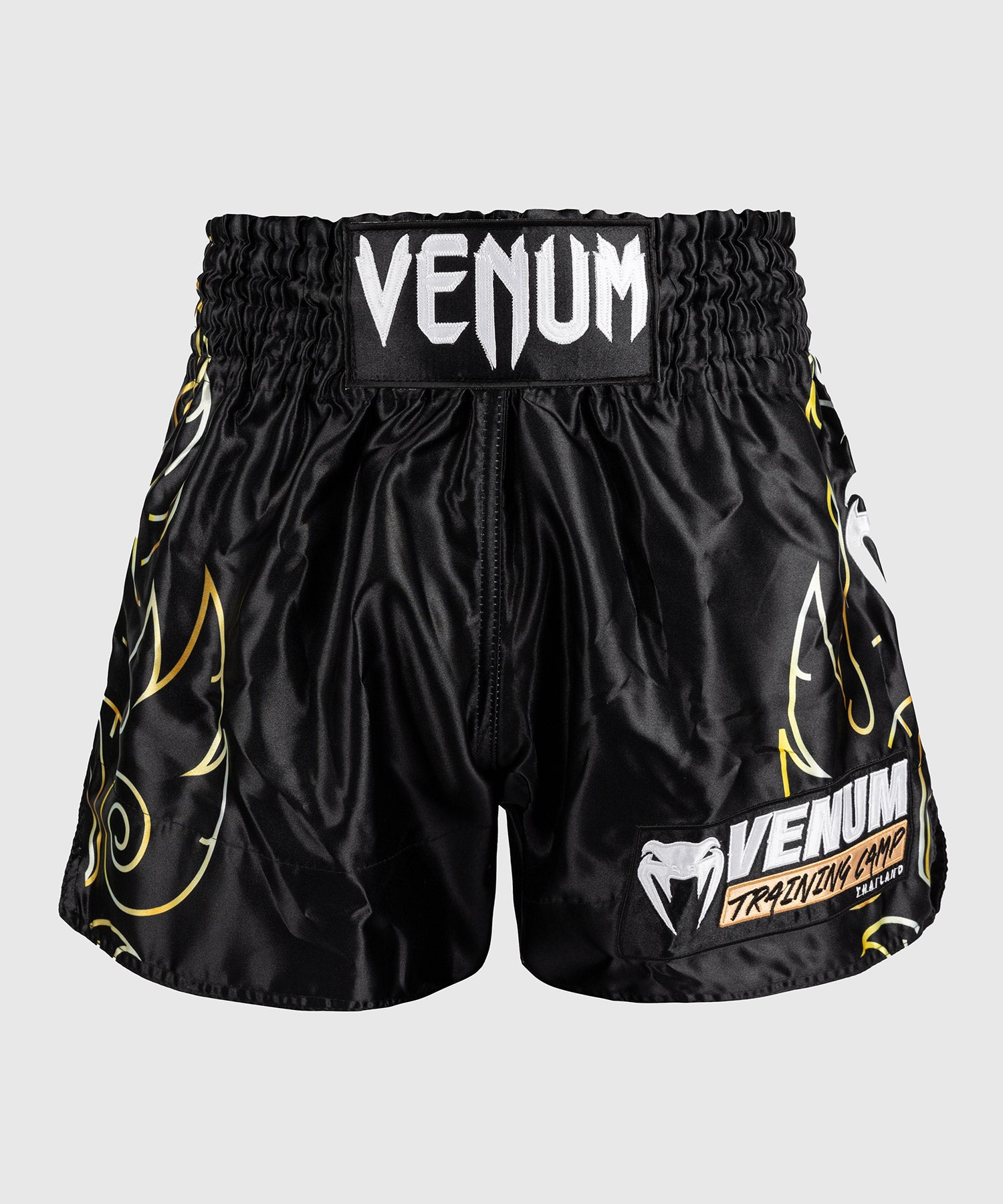 Venum VTC Flames Pantalones Cortos Muay Thai - Negro/Dorado