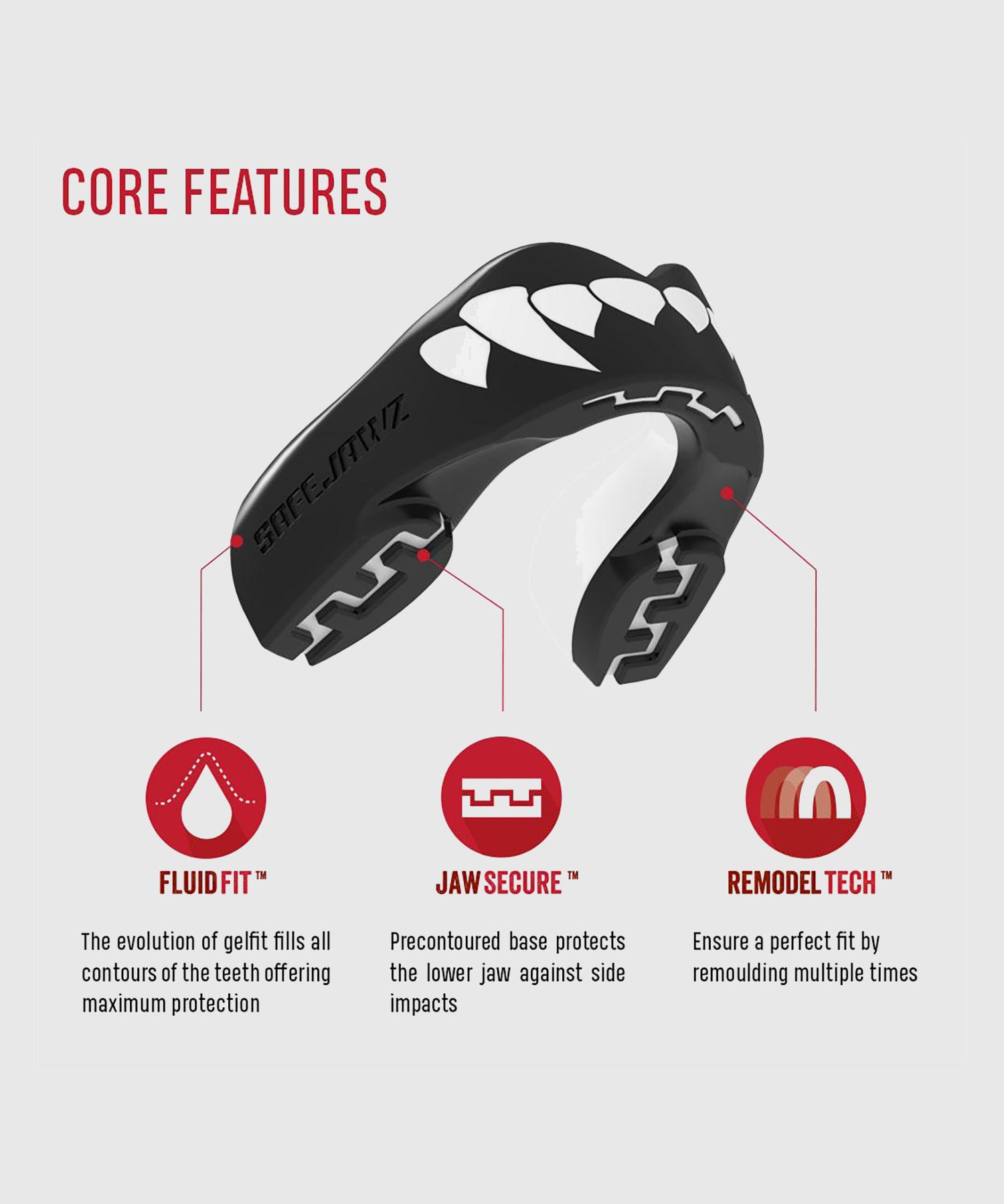 Association de protection et de style, le protège-dents The Mo de Safejawz répondra aux attentes des athlètes qui prennent leur sport au sérieux.