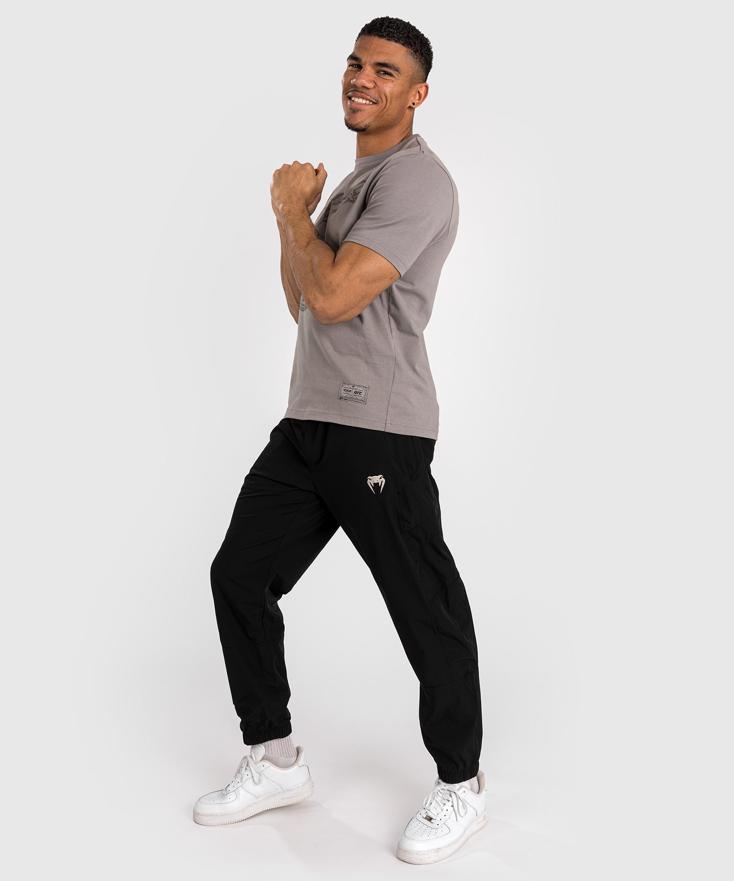 Sur ce T-shirt graphique noir à col ras du cou, le logo emblématique Ulti-Man en gris occupe le devant de la scène, tandis qu'un écusson de marque se trouve sur la hanche. Le logo Venum, également gris, est apposé dans le cou arrière.
