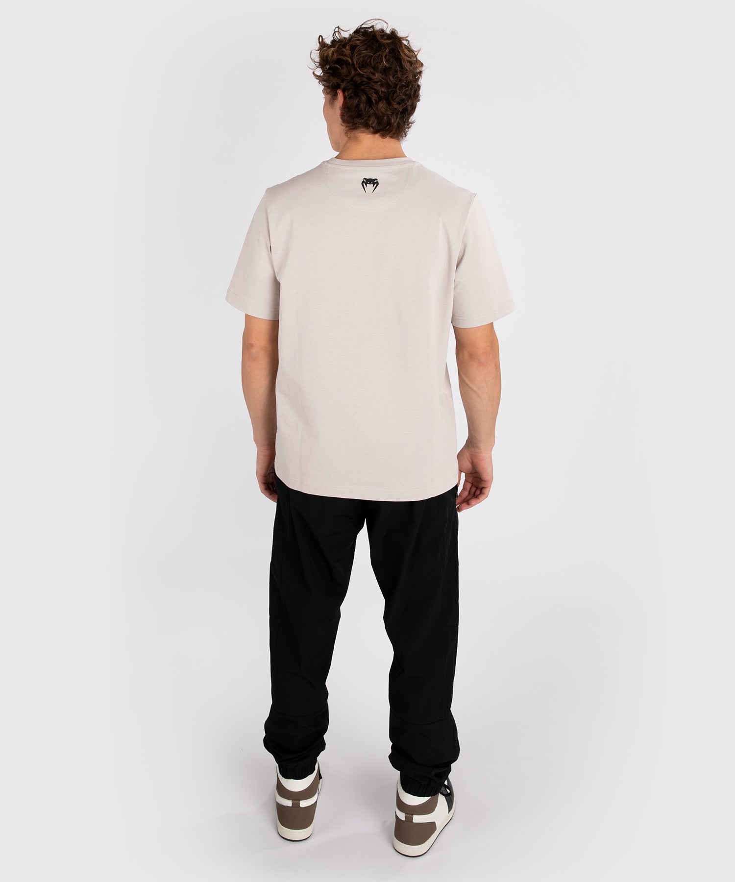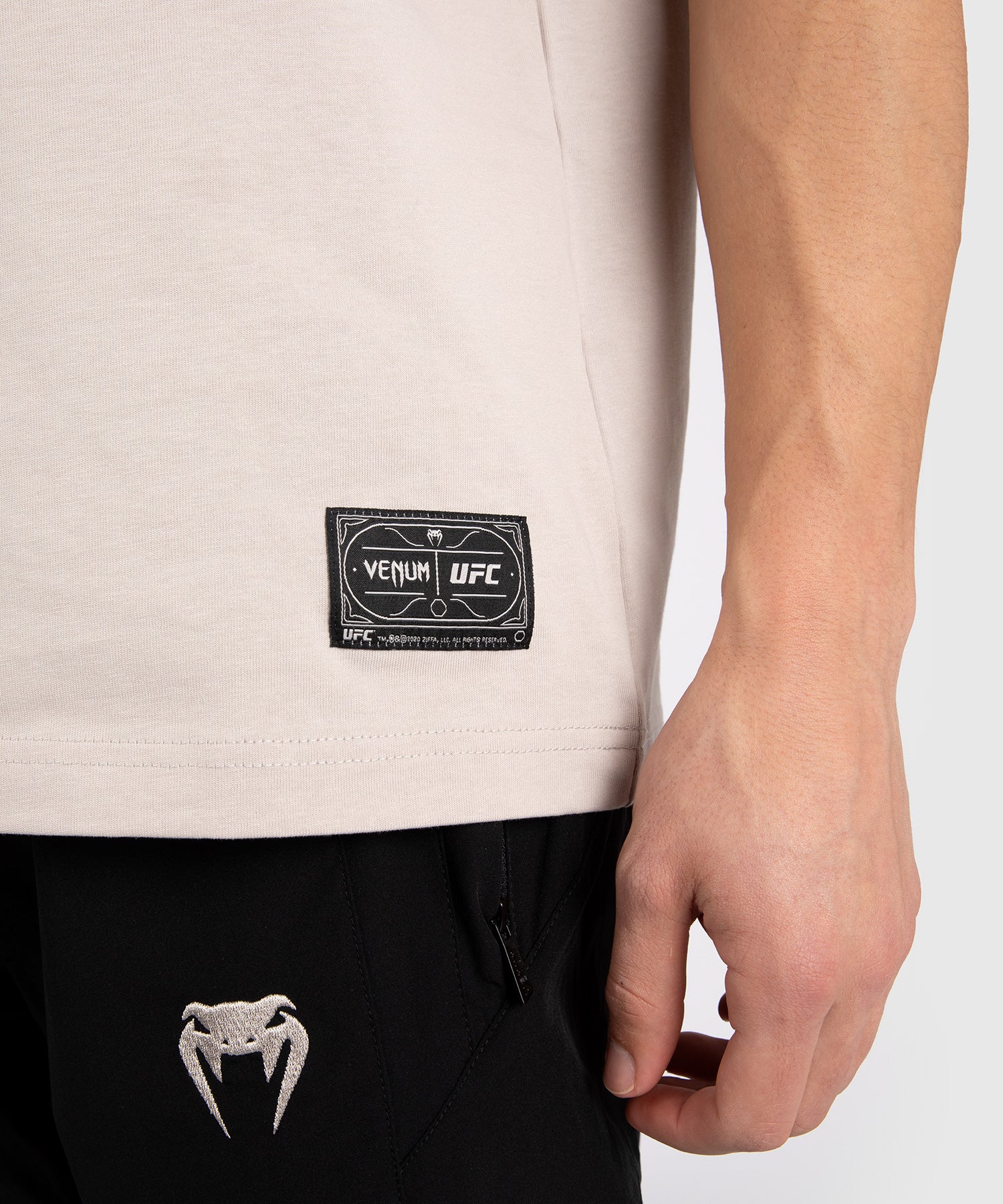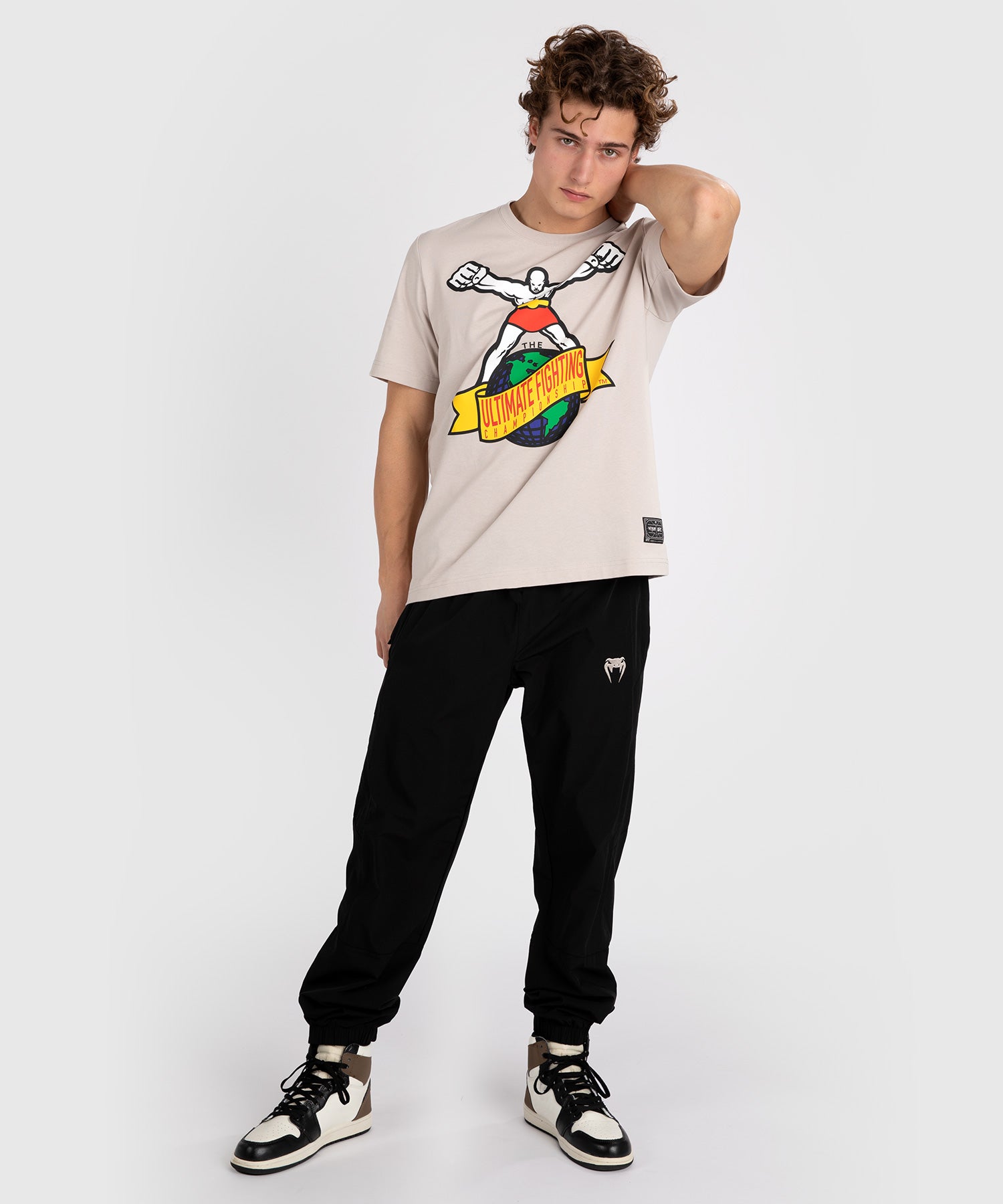 Sur ce T-shirt graphique noir à col ras du cou, le logo emblématique Ulti-Man en gris occupe le devant de la scène, tandis qu'un écusson de marque se trouve sur la hanche. Le logo Venum, également gris, est apposé dans le cou arrière.